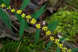 Solidago caesia, commonly named blue-stemmed goldenrod, wreath goldenrod,[2] or woodland goldenrod,[3] is a flowering plant native to North America.