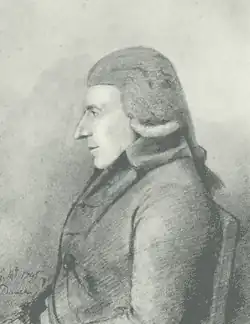 His father, Richard, was a clergyman. He was sent away to attend school in Dublin. In addition to the standard courses, he worked with Robert West and studied at the School of Landscape and Ornament, operated by the Royal Dublin Society.[1] His primary instructor there was James Mannin (?-1779) a landscape and flower painter of French origin.[2] In 1750, he won a prize from the Academy and was given a second-place order of merit. His first known work was a portrait of Isaac Sparks (1719-1776), a popular comedian known as the "Right Comical Chief Joker", who held mock trials.[3] Little else is known from his Dublin period.[4]