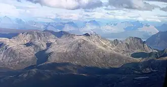 Soltindan is the highest mountain on the island of Ringvassøya which is located in Karlsøy Municipality in Troms county, Norway. It is located just north of the border with Tromsø Municipality, about 14 km (8.7 mi) southwest of the village of Hansnes. The 1,051-metre (3,448 ft) mountain has a topographic prominence of 1,051 metres (3,448 ft) and a topographic isolation of 16 kilometres (9.9 mi).[2] Just to the north of the peak is the small glacial lake, Brevatnet.
