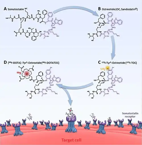 - ^ Hoyer D, Bell GI, Berelowitz M, Epelbaum J, Feniuk W, Humphrey PP, O'Carroll AM, Patel YC, Schonbrunn A, Taylor JE (1995). "Classification and nomenclature of somatostatin receptors". Trends Pharmacol. Sci. 16 (3): 86–8. doi:10.1016/S0165-6147(00)88988-9. PMID 7792934.