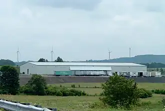 The wind farm is just one-half mile (0.80 km) south of the Pennsylvania Turnpike, which makes its 215-foot-tall (66 m)[3] towers easily visible to turnpike travelers.[4]