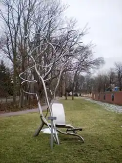 This piece was acquired by the Indianapolis Art Center for its ARTSPARK which brings together art and nature.[1] In 2005 the piece was on display in the Lincoln Park neighborhood of Chicago.[2]