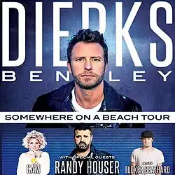 The Somewhere on a Beach Tour was the eleventh headlining concert tour by American country music artist Dierks Bentley, in support of his eighth studio album Black (2016). It began on April 21, 2016, in Dublin, Ireland and ended on October 29 of that year in Roanoke, Virginia.[1]