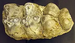 The Somosaguas Sur site has a great richness of micromammal fossils (more than 400 fossil teeth were found in 50 kg (110 lb) of sediment) that have allowed us to assign it to the Middle Aragonian E biozone (13.75–14.10 million years ago).[8][note 1] The taxa identified belong to different groups: Gliridae (Microdyromys koenigswaldi, Microdyromys monspeliensis and Armantomys tricristatus), Sciuridae (Heteroxerus grivensis and Heteroxerus rubricati), Cricetidae (Megacricetodon collongensis, Democricetodon darocensis, Cricetodon soriae and Democricetodon lacombai), Insectivora (Miosorex grivensis and Galerix exilis), Lagomorpha (Lagopsis penai and Prolagus oeningensis) and Reptilia (Chelonia, Lacertidae and Anguidae).[9] Among the macrovertebrates, remains of the mastodon Gomphotherium angustidens have been recovered; from the family Rhinocerotidae, the taxon Alicornops simorrense has been identified; from the family Equidae, remains of Anchitherium have been found; and among the ruminants, there are fossils of the genera Heteroprox (Cervidae), Micromeryx (Moschidae) and Tethytragus (Bovidae). There is also a suid, Conohyus.[10]