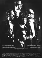 The Soni Ventorum Wind Quintet was an American wind quintet that was officially founded in 1962 when Pablo Casals asked its members to become the woodwind faculty of his newly founded Conservatory of Music of Puerto Rico.[1] It is known worldwide for its many international tours sponsored by the United States Department of State including three tours of South America[1] and three of Europe. Over 25 original chamber works for winds have been written for the members of Soni Ventorum including compositions by Claude Arrieu,[2] William Bergsma,[3] Jean Francaix,[4] Gerald Kechley, Joseph Goodman,[5] John Verrall, and William O. Smith.[6] In 1972 the quintet won the silver medal at the International Instrumental Ensembles Competition (Festival Villa-Lobos) in Rio de Janeiro.