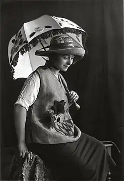 For the 1923 staging of Tristan Tzara's play Le Cœur à Gaz she designed the set and costumes.[30] In 1924 she opened a fashion studio together with Jacques Heim. Her customers included Nancy Cunard, Gloria Swanson, Lucienne Bogaert and Gabrielle Dorziat.[31]