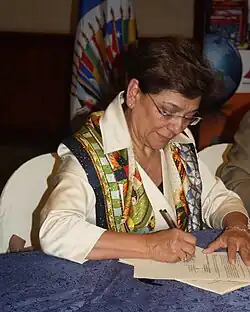 During the presidential elections of 2002 and 2006[14] she led the electoral campaign for presidential candidate Leon Roldos. In 2007 she was a candidate for the Constitutional Assembly.[15][16][17] She was considered as a vice presidential candidate during the 2012 elections.[18][19]
