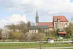 The nunnery, dedicated to the Blessed Virgin Mary, was founded in 1260 by Henry II von Sonneberg[1] and his wife Kunigunde. Initially it was located in Ebersdorf bei Coburg but after a fire in 1287 it was moved to Hofstädten, where the abbey with its surrounding settlement and district adopted the name "Sonnefeld". (In 1889 Sonnefeld and Hofstädten merged to become the present municipality of Sonnefeld). The landowner was the Prince-Bishop of Bamberg, Berthold of Leiningen, who was trying by means of the monastic foundation to stop the territorial advances of the Counts of Henneberg. The spiritual leader was the Bishop of Würzburg. The settlement was made by nuns from Maidbronn Abbey. The endowment included the nearby villages of Frohnlach and Ebersdorf. In 1262, the abbots of Ebrach and Bildhausen inspected progress and arranged for recognition by the Cistercian Order.