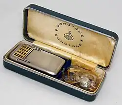 - ^ http://www.hearingaidmuseum.com/gallery/Transistor%20(Body)/Sonotone/info/sonotone1010.htm Sonotone 1010 at the Hearing Aid Museum, retrieved December 30, 2009