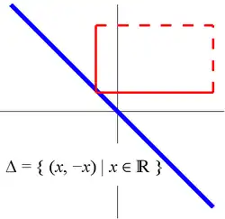 A basis for the Sorgenfrey plane, denoted from now on, is therefore the set of rectangles that include the west edge, southwest corner, and south edge, and omit the southeast corner, east edge, northeast corner, north edge, and northwest corner. Open sets in are unions of such rectangles.