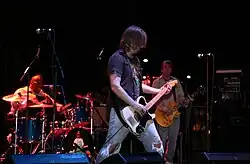 Soul Asylum performing at a 2010 concert in Urbana, Illinois. From left to right: Michael Bland (drums), Dave Pirner (vocals, rhythm guitar), and Dan Murphy (lead guitar).