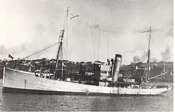 As part of the British Empire, South Africa went to war against the Central Powers on 4 August 1914,[9] despite significant Afrikaner opposition.[10] A total of 412 South Africans served in the RNVR[SA] during the war, with 164 members volunteering for the Royal Navy directly.[11] One officer and eight ratings died during the course of the war.[11] South Africans would see service on warships in European waters and the Mediterranean, as well as participate in the land campaigns in German South West Africa and German East Africa. Under Royal Navy jurisdiction, the RNVR (SA) patrolled South African waters in converted fishing vessels, helping in mine clearance in response to the operations of the German raider SMS Wolf in 1917,[12][13] as well as protecting the strategically important Royal Navy naval base at Simon's Town.