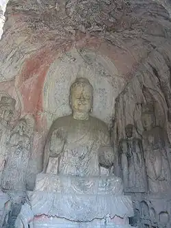 Initiated by order of Emperor Xuanwu of the Northern Wei in honour of his parents Emperor Xiaowen and Empress Wenzhao, the cave was not completed until the Sui.