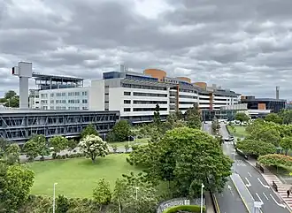 The hospital is built on the site of the 1883 Diamantina Orphanage, named after Diamantina Bowen, wife of the first Governor of Queensland, and the former Queensland School for the Deaf, which closed in 1988.[2] In 1901, it became Diamantina Hospital for Chronic Diseases. In 1943, it became the South Brisbane Auxiliary Hospital and then the South Brisbane Hospital in 1956.[3]
