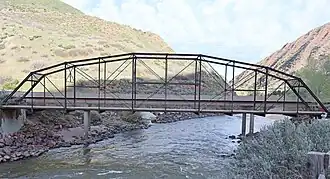 The South Canon Bridge is a former truss road bridge spanning the Colorado River near Glenwood Springs, Colorado. It was built in 1915 by the Missouri Valley Bridge & Iron Co.. It was listed on the National Register of Historic Places (reference number 85000212) in 1985.[1]