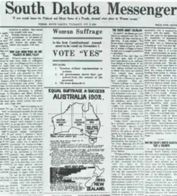The South Dakota Messenger was a weekly feminist newspaper in South Dakota, United States, from January 1912 to October 1914.[1][2] It was published in Pierre, South Dakota, by Wm. J. Mundt.[1] Marguerite Karcher-Sahr, the daughter of Pierre pioneer Henry Karcher, wrote for the newspaper.[3] Ruth B. Hipple was one of the editors.[2]