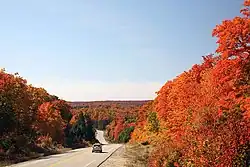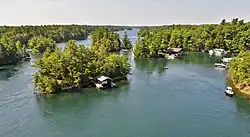 Eastern Ontario maintains significant forest coverage, predominantly in the areas of the Canadian Shield that could not be cleared for agricultural purposes. A singular forest region is located in Eastern Ontario,[18] known as the Great Lakes-St. Lawrence forest.[19] The historical prominence of the logging industry has resulted in significant historical clearing of these forests, but the implementation of more sustainable forestry practices and governmental protections on certain areas has resulted in regrowth and retention of forests on areas not suitable for agriculture. One major federally protected area, Thousand Islands National Park, is located in Eastern Ontario. Multiple provincial parks are also located in the region, with the most significant of which being Algonquin Provincial Park, itself established to encourage sustainable forestry practices after being clearcut in the late 19th century.[20]