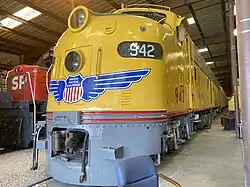 - The Union Pacific E8A 942 built by General Motors' Electro-Motive Division in 1953. It is one of 18 UP cars and locomotives preserved at the museum. The 942 is the flagship of the museum's UP fleet. It has been fully mechanically and cosmetically restored to UP's traditional yellow paint scheme with red and grey accents. The locomotive is occasionally used to lead a matching four car passenger train consist, nicknamed “The City of Perris”, playing on Union Pacific's practice of christening certain named trains after cities they originated from. Example: City of Los Angeles, City of San Francisco. The consist runs on select weekends, and occasionally for special events.