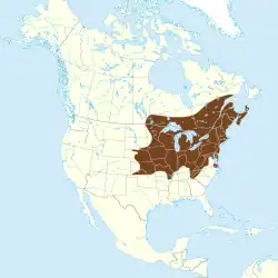 Southern bog lemmings are found in eastern North America, from southern Quebec and Manitoba in Canada to western Minnesota, to northwestern Georgia, to southwest Kansas, and east to the Atlantic Coast of the United States. This species is more common in deciduous and mixed coniferous–deciduous forests. The grassy openings and edges of these forests, especially where sedges, ferns, and shrubs grow and when the soil is loose and crumbly, are habitats the bog lemming prefers. It also inhabits wetter and drier sites when meadow voles are scarce or absent. The southern bog lemming creates a maze of interconnecting tunnels and runways and builds nests from plant fibers. Summer nests are on the surface of the ground or in a clump of sedges or grasses, but winter nests are usually underground in an enlarged tunnel. These animals are found in mixed forests, wetlands, and grasslands.[4]