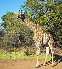 The southern giraffe (Giraffa giraffa), also known as two-horned giraffe,[1] is a species of giraffe native to Southern Africa.[2] The IUCN recognises four giraffe species, with several recognised subspecies.[3][4][5]
