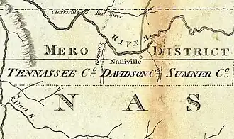The Mero District included the lands around Nashville and along the Cumberland River, north to the modern Kentucky border. It included three counties—
