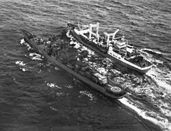 On 5 December, Admiral Isachenkov entered service with the Northern Fleet, and on 5 March the following year hosted the Minister of Defence, Marshal of the Soviet Union Andrei Grechko.[19] Between 3 and 21 April, the vessel then acted as a flagship during the open ocean exercise Okean-75 under his leadership. This was then followed by service off the coast of Norway between 15 September and 22 November, including tracking the United States Navy aircraft carrier USS Independence.[20] The ship's helicopter also approached the aircraft carrier HMS Ark Royal of the Royal Navy, flying close to the bow to take photographs of the aircraft on the flight deck.[21] The vessel proved suited to the role of monitoring NATO vessels.[22] Almost a year later, between August and October 1976, the ship once again observed NATO aircraft carriers, this time USS John F. Kennedy as well as Ark Royal, alongside sister ship Marshal Timoshenko.[20]