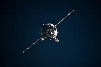 The Soyuz crew relocated the MS-13 spacecraft from the aft port of the Zvezda module and performed a manual docking on the Poisk module on 26 August 2019.[4] This cleared the way for Soyuz MS-14 to perform an automatic docking on Zvezda, after a faulty signal amplifier on Poisk caused MS-14's first docking attempt to abort on 24 August 2019.[9] The last time a Soyuz spacecraft was relocated was in August 2015 during the Soyuz TMA-16M mission.[10]