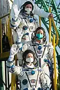 Soyuz MS-17 was a Soyuz spaceflight that was launched on 14 October 2020.[4][11] It transported three crew members of the Expedition 63/64 crew to the International Space Station. Soyuz MS-17 was the 145th crewed flight of a Soyuz spacecraft. The crew consisted of a Russian commander and a Russian and American flight engineer.[12][13][14]