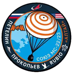 Soyuz MS-23 was an uncrewed Russian Soyuz spaceflight that launched from Baikonur on 24 February 2023 to the International Space Station to replace the damaged Soyuz MS-22 spacecraft for landing that NASA astronaut Francisco Rubio and Roscosmos cosmonauts Sergey Prokopyev and Dmitry Petelin launched onboard on 21 September 2022 and had a coolant leak on 14 December before returning to Earth uncrewed on 28 March 2023.[2]