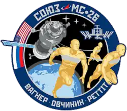 Soyuz MS-26, Russian production No. 757 and identified by NASA as Soyuz 72S, was a Russian crewed Soyuz spaceflight launched from Site 31/6 at the Baikonur Cosmodrome on 11 September 2024 to the International Space Station.[4][5][6] The mission transported three crew members, Roscosmos cosmonauts Aleksey Ovchinin and Ivan Vagner, along with NASA astronaut Donald Pettit.