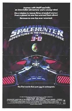 Spacehunter: Adventures in the Forbidden Zone is a 1983 American-Canadian science fiction action film. The film stars Peter Strauss, Molly Ringwald, Ernie Hudson, Andrea Marcovicci and Michael Ironside.[5] The film's executive producer was Ivan Reitman, and it was directed by Lamont Johnson. The film's music score was composed by Elmer Bernstein. When the film was originally released in theaters it was shown in a polarized, over/under 3-D format. The film became part of the 3-D film revival craze of the early 1980s, being widely released after Comin' at Ya! (1981). The film is about a bounty hunter who goes on a mission to rescue three women stranded on a brutal planet and meets a vagrant teenage girl along the way.