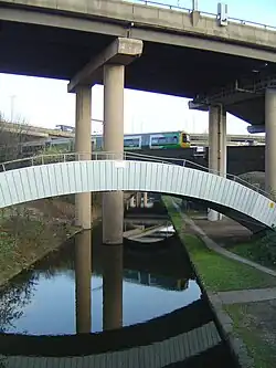 Underneath the motorway junction are the meeting points of local roads, the River Tame's confluences with the River Rea and Hockley Brook, the Cross-City and Walsall railway lines and Salford Junction, where the Grand Union Canal, Birmingham and Fazeley Canal and Tame Valley Canal meet.