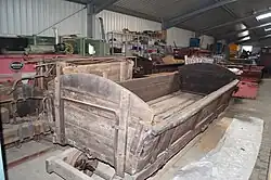The wooden V skip wagons had double-flange wheels and were very practical. The contents fell far enough from the rails that it did not block the track. As it tilted, all of the contents slid out of the skip without much of it, unlike what happened with other systems, remaining where it had to be shoveled out by hand. The chassis of the tippers could be used as a flat wagon for the transport of general cargo after removing the arched supports at both ends, which were just held in place by a stud and some screws.