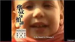 The 2009 SMC started with a series of videos on foreign children speaking correctly pronounced and fluent Chinese,[19] showed that anyone can learn Chinese, that it is not something only the Chinese people can acquire. The video shows foreign children talking about either Chinese myths or other Chinese related culture. The Promote Mandarin Council[20] is trying to alert Singaporeans to embrace Singaporean heritage and pass it on to the next generation.