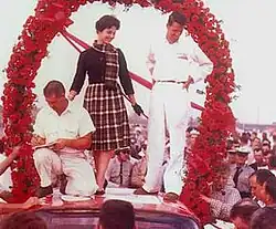 ![]() Speedy Thompson is adoring his fans after winning the 1960 National 400 in Charlotte | |||||||