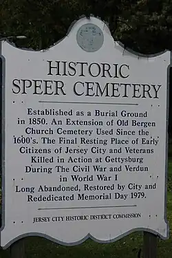 - ^ "Speer Burial Ground/DeMott Burial Ground". Jersey City Past and Present. New Jersey City University. Archived from the original on 2011-06-05. Retrieved 2011-03-20.