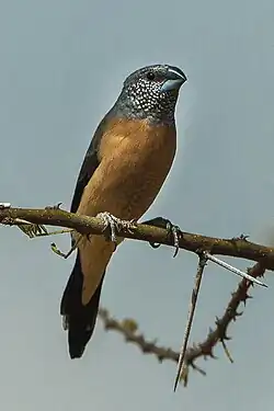 - ^ Olsson, Urban; Alström, Per (2020). "A comprehensive phylogeny and taxonomic evaluation of the waxbills (Aves: Estrildidae)". Molecular Phylogenetics and Evolution. 146: 106757. Bibcode:2020MolPE.14606757O. doi:10.1016/j.ympev.2020.106757. PMID 32028027.