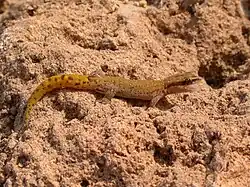 The Sphaerodactylidae are a family of geckos (Gekkota) distributed in North America, Central America, South America, and the Caribbean, as well as in Southern Europe, North Africa, the Middle East, and into Central Asia. The family contains 12 living genera and over 200 living species.[2][3][4] The family name comes from the ball shape of their finger joints.