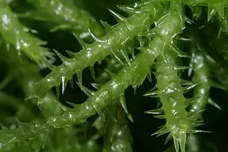 Sphagnum squarrosum, commonly known as the spiky bog-moss or spreading-leaved bog moss, is a peat moss species found in nutrient-rich, damp soils and wetlands across the Northern Hemisphere, with isolated populations in South America. Its spiky appearance, resulting from strongly spreading branch leaves, distinguishes it from other peat moss species. Playing an important role in wetland succession, the species is one of the first Sphagnum mosses to colonise developing wetlands. It shows considerable tolerance to mineral-rich conditions and actively modifies its habitat through cation exchange processes.
