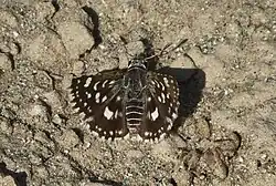 Spialia doris, the Aden skipper or desert grizzled skipper, is a butterfly of the family Hesperiidae. It is found in Morocco, Egypt, Saudi Arabia, United Arab Emirates, Somalia and India. In the Atlas Mountains it is found at heights of 400 to 1,750 meters above sea-level.