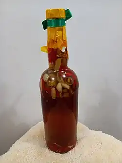 Spiced vinegar is a type of Philippine vinegar condiment that is made of vinegar e.g. fermented coconut sap (Cebuano: sukang tuba)[1] infused with spices primarily bird's eye chili and garlic.
