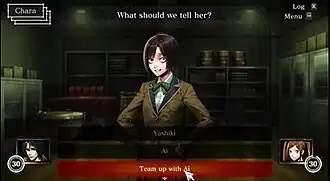 The investigations are conducted together with one of several partner characters; depending on which is chosen, the player has access to different locations and items. Each character has a set of statistics, which in the player character's case can be increased. These are used to affect outcomes in dangerous situations, such as when being attacked by a spirit, in a system called Suspensive Act.[3]