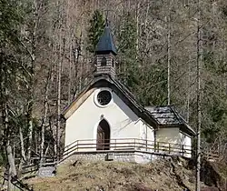 A masonry chapel dedicated to Saint Hubertus stands on a hill in the southern part of the settlement, in the hamlet of Zgornje Fužine. It is a single-nave structure with a belfry that was built in the Gothic Revival style in 1853. The chapel contains wooden furnishings and an oil painting of Saint Hubertus.[3]