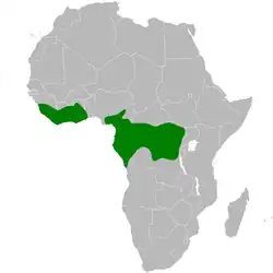 - P. n. nitens, the nominate subspecies, which occurs in Guinea, Sierra Leone, Ivory Coast, Ghana, Togo, Nigeria, Gabon, Congo and Angola.