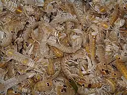 Though Squilla offers little nutritional value due to its very small size, the compounds chitin and chitosan are able to be extracted from Squilla exoskeletons, as is the case with many crustacean species. Chitosan, in particular, has been found to reduce blood plasma levels of HDL in humans, as well as protect against the growth of some microorganisms, most notably Candida, which is a genus of yeasts.[10] New research has also demonstrated that chitosan produced from Squilla shells may also be beneficial in fighting fungus infections and cancerous growths.[11]