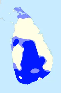 This species was previously considered to be wide-spread across India and South East Asia, until the 2020 study by Mallik et al. restricted the population to Sri Lanka.[2]
