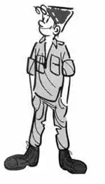 Srulik is generally depicted as a young man or teenager wearing a tembel hat, Biblical sandals, and khaki shorts. Dosh drew Srulik in cartoons on current events for Maariv, and also for various "specials" and occasions of the young state. During wartime, Srulik put on a uniform and was drafted to raise the national morale.