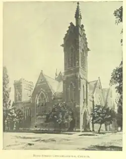 Originally located east of Yonge Street on Dundas Street, the congregation moved uptown in 1927, to a growing suburban development north of Eglinton Avenue. The Bond Street building was acquired by a pentecostal church, Evangel Temple. The building was destroyed by fire after Evangel Temple moved to the Hoggs Hollow area, near Yonge and York Mills, on September 19, 1981.[3]