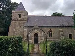 St. Laurence's church is "a picturesque village church, which was much restored by the rector Rev. William Wood during the Victorian period. He also built the rectory through whose grounds one has to go in order to gain access to the church. The solid tower remains from the 12th century."[2]