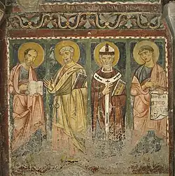 The 13th-century crypt of the Cattedrale di Santa Maria Annunziata in Anagni is dedicated to Magnus and decorated with frescoes of scenes from his life and death, in which his shrine is symbolized as the Ark of the Covenant.[13][14] Since the 17th century Magnus also serves as patron saint of the Church of Santi Michele e Magno in Rome.